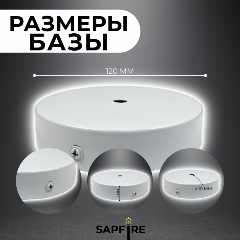 База 120мм/белый - металлическая потолочная площадка для светильника, с крепежом, SPFR5584