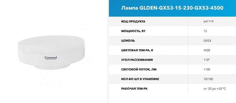 Лампа GLDEN-G53-15-230-G53-4500 GNRL RSP 10/100
