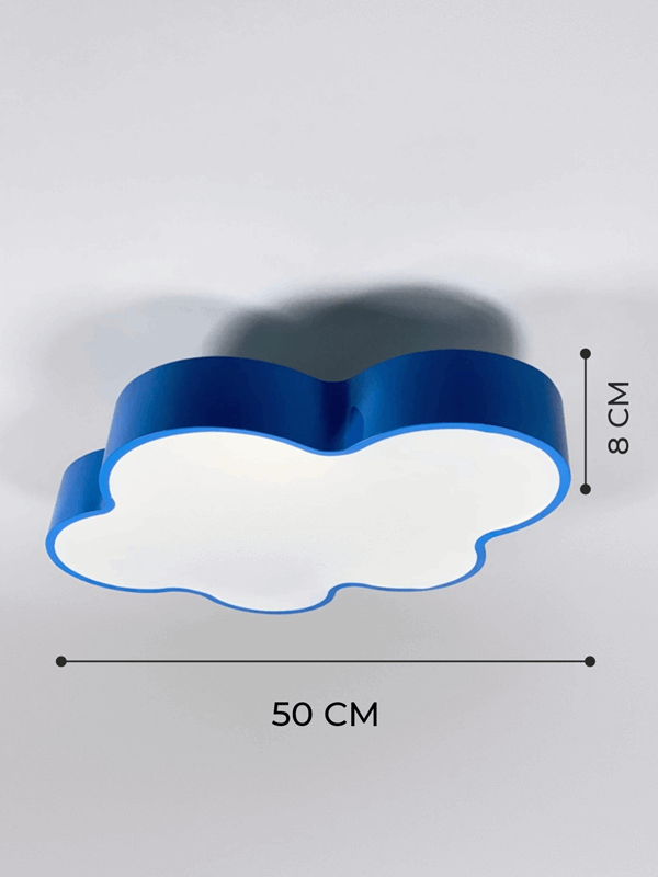 Яркое и весёлое основание светильника в форме облака - выполнено из синего окрашенного металла. Рассеиватель сделан из белого матового пластика, равномерно пропускает свет.