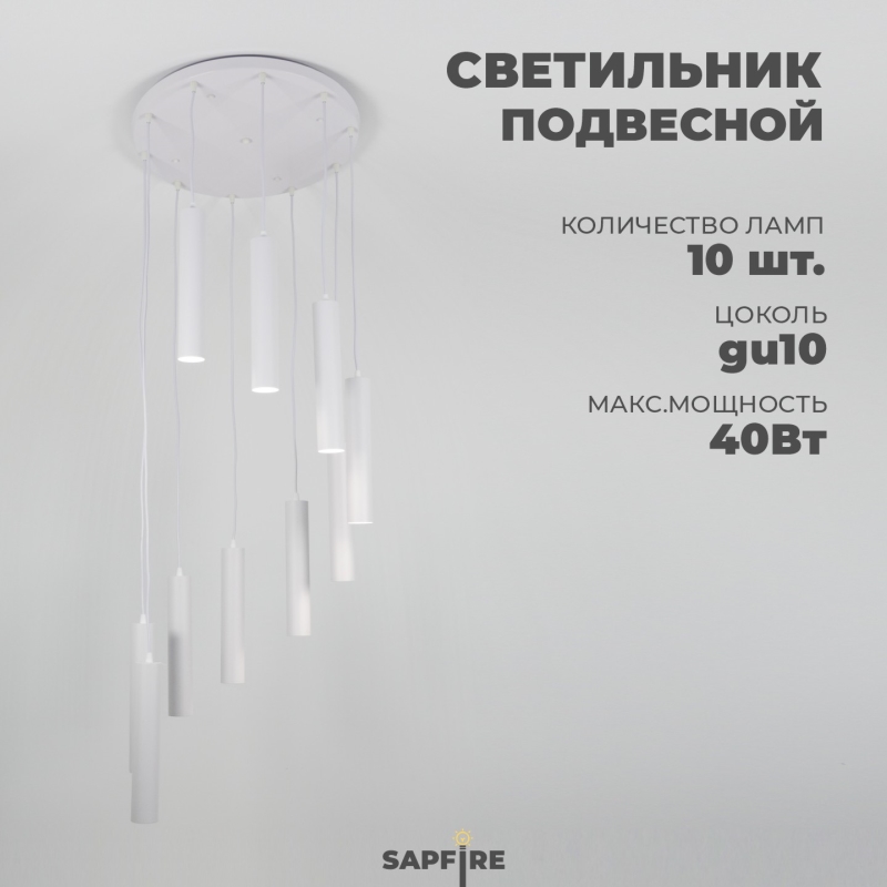 Светильник подвесной SPFD-13174 БЕЛЫЙ D500/H4000/10/GU10/50W SIRIUS без ламп